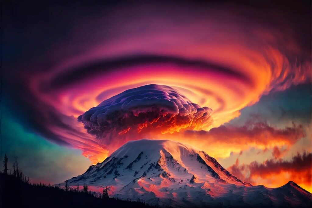 Midjourney Mt Rainier Sunset